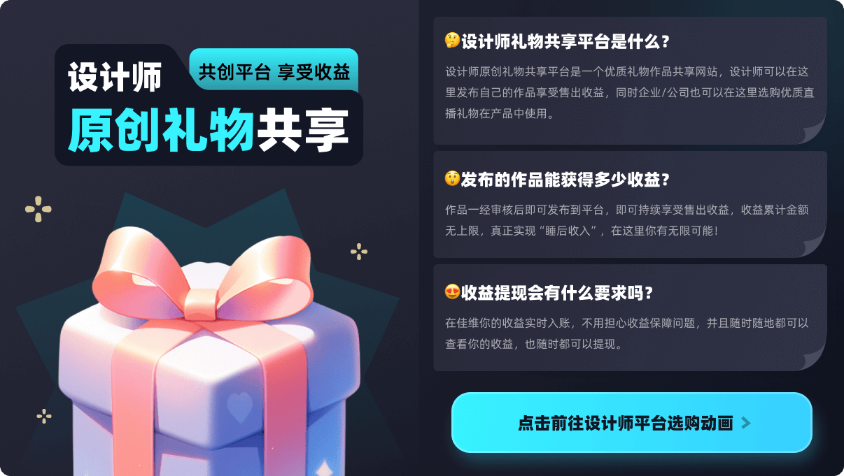 所有礼物均支持svga、vap、mp4、json、webp、pag格式 需要转换联系商务。