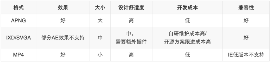 目前我们有APNG方案和IXD方案,包括市面上的SVGA方案,从播放可控到文件大小都有了一定的解决方案,似乎已经可以告一段落了。但这几个方案依旧有各自的缺陷:
